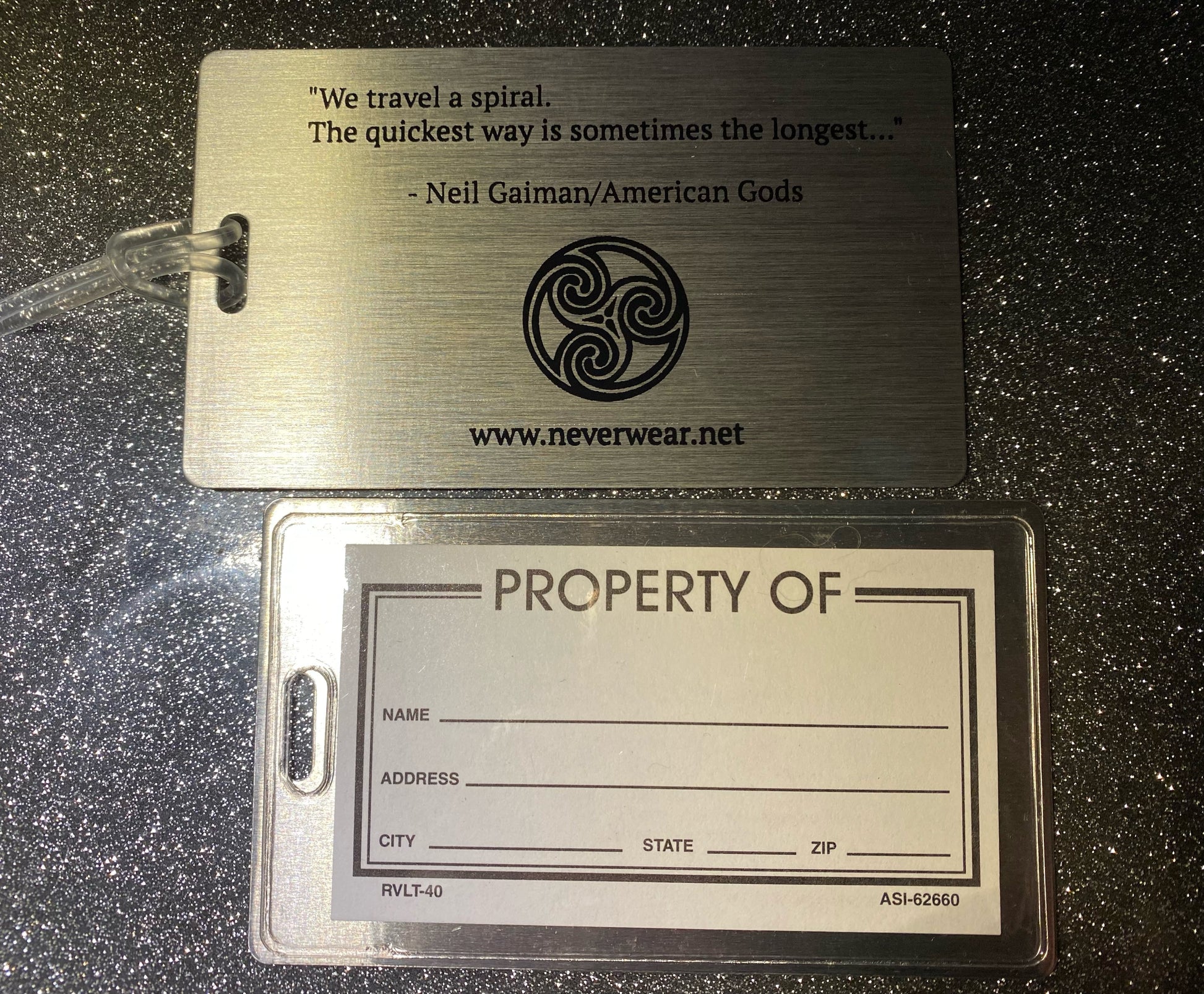 These metal tags are beautiful, with Neil's quote from American Gods: